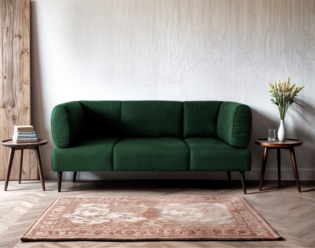 Диван с подлокотниками Tobi Sho Бенно-1 офисный с конусной ногой 1800х720х750 велюр Emilia 38 EMERALD