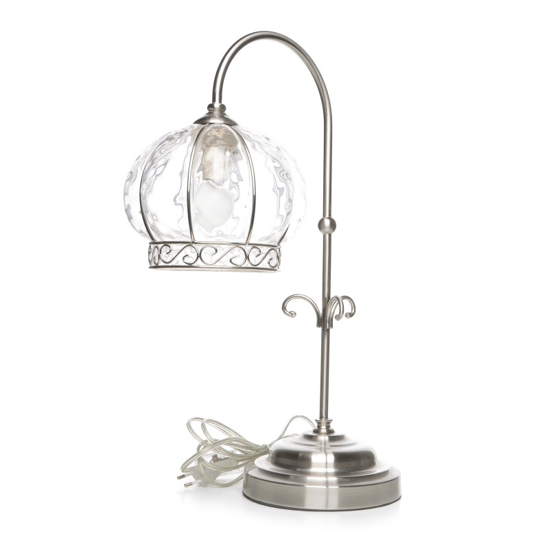 Настольная лампа прованс декоративная BELL-007T/1 E14 N Clear, выполненная из материала Металл в цвете Никель. Дизайн оформления — в актуальном стиле Классический. В качестве источника света используется лампочка с цоколем E14.