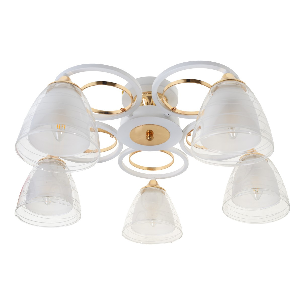 Люстра потолочная LK-663S/5 E27 WH+FG, выполненная из материала Металл в цвете Белый. Дизайн оформления — в актуальном стиле Прованс. В качестве источника света используется лампочка с цоколем E27 и мощностью 60W.