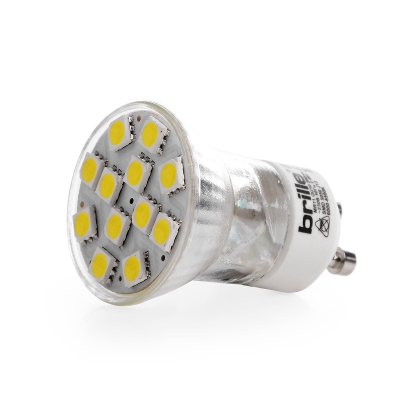 Лампочка с цоколем GU10 мощностью 2.4W рассчитана для работы в сети переменного тока.