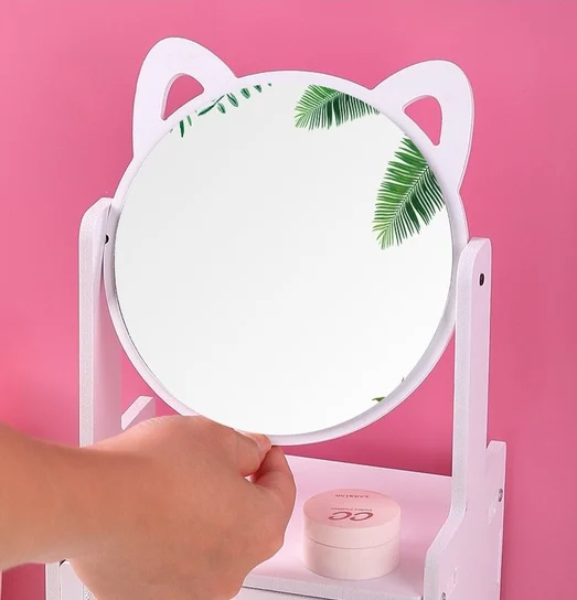Мини-шкафчик с зеркалом, настольный органайзер для косметики, органайзер для украшений с 2 ящиками