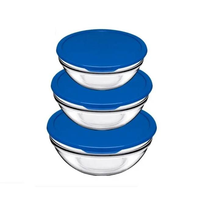 Набор салатников с пластиковыми крышками 3 шт. 17.3 см, 20 см, 23 см Pasabahce Chefs 98304 Набор салатников с крышкой Pasabahce – комплект универсальных предметов для каждой кухни. Салатники можно использовать как мисочки, для подачи блюд на стол для хранения продуктов в холодильнике или для разогрева пищи в микроволновке (предварительно сняв крышечку). Высококачественное стекло жаростойкое и экологически чистое, безопасное для здоровья человека. Обаятельный современный дизайн салатников украсит любой стол – как повседневный, так и торжественный. Характеристика: Вид: Салатник Тип поставки: Набор Материал: Стекло Материал крышки: Пластик Диаметр: 17,3 см, 20 см, 23 см Высота: 7,8 см, 9 см, 10,5 см Форма: Круглая