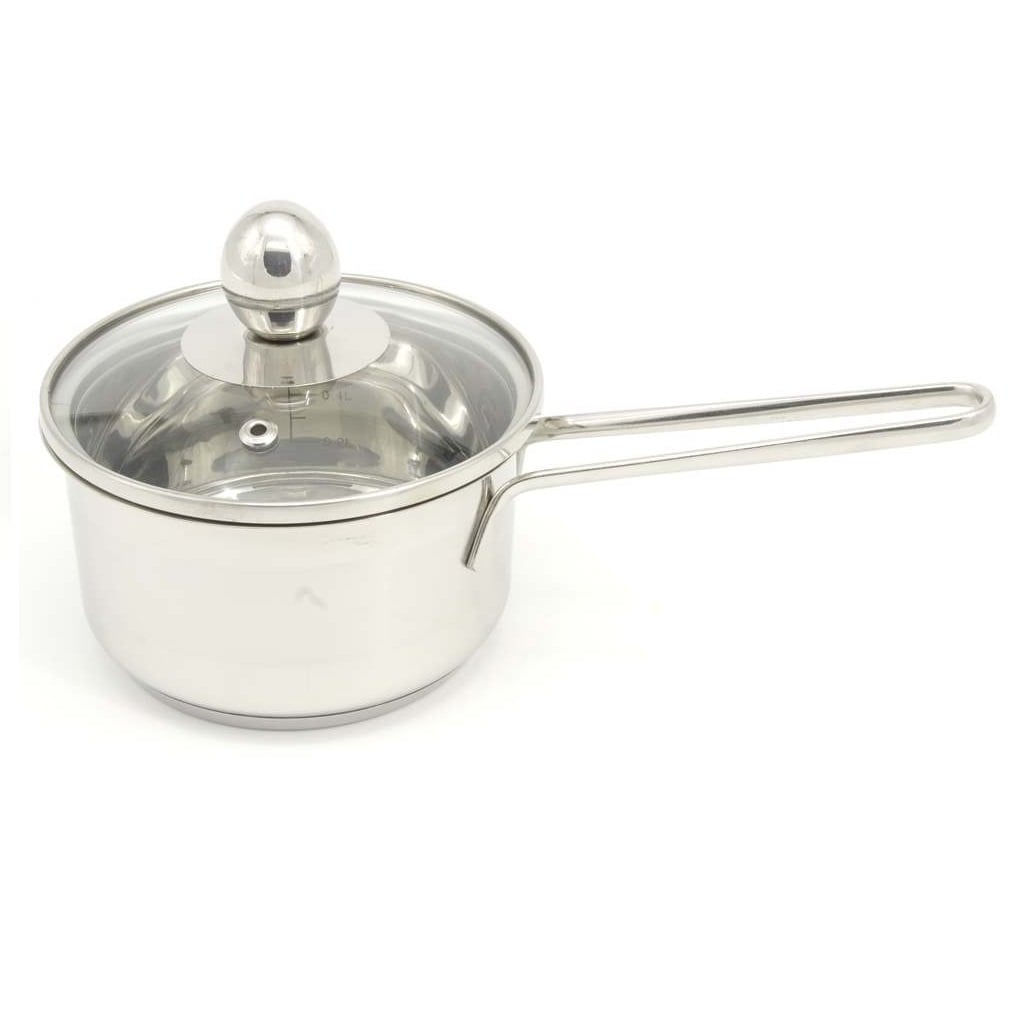 Ковшик изготовлен из высококачественной нержавеющей стали, которая гарантирует практичность, долговечность и безупречный внешний вид посуды. Многослойное (5-слоев) дно позволяет равномерно распределять и значительно дольше сохранять тепло по стенкам и дну посуды, что предотвращает пригорание пищи и обеспечивает более быстрое приготовление блюд. Крышка из термостойкого стекла даёт возможность контролировать процесс приготовления без потери тепла. Мерная шкала дает возможность более точно подбирать ингредиенты. Аккумуляция тепла при закрытой крышке создает замкнутый цикл парообразования, что позволяет готовить в такой посуде без использования масла и воды или же с их минимальным количеством, а также позволяет сохранить натуральный вкус продуктов. Подходит для разных типов плит,а также индукционных.