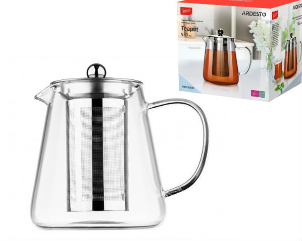 Заварочный чайник Ardesto Gemini 1000 мл боросиликатное стекло нержавеющая сталь AR1910GM