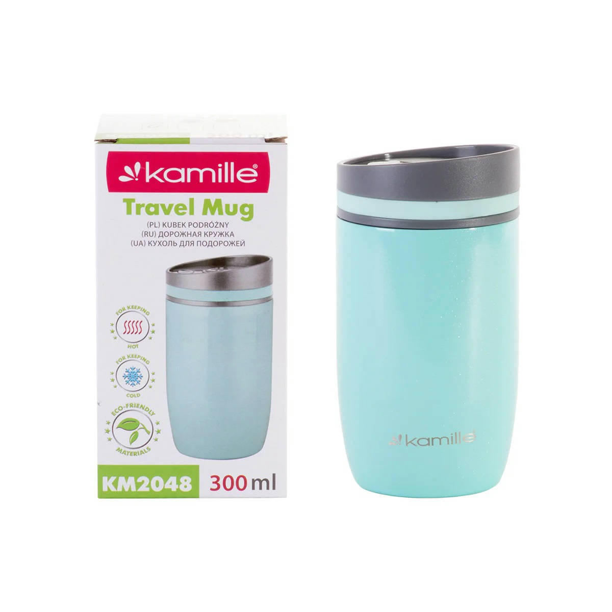 Термокружка Kamille 380 мл из нержавеющей стали Серебристая / Голубая КМ-2052
