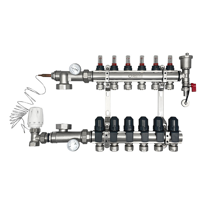 Колекторная группа никелированная Remi - это прекрасное решение для современных систем теплого пола.