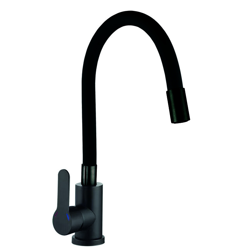 Кухонный смеситель с черным силиконовым изливом Zerix LUX-011 Refl.Black (нерж. сталь) (ZX4875)