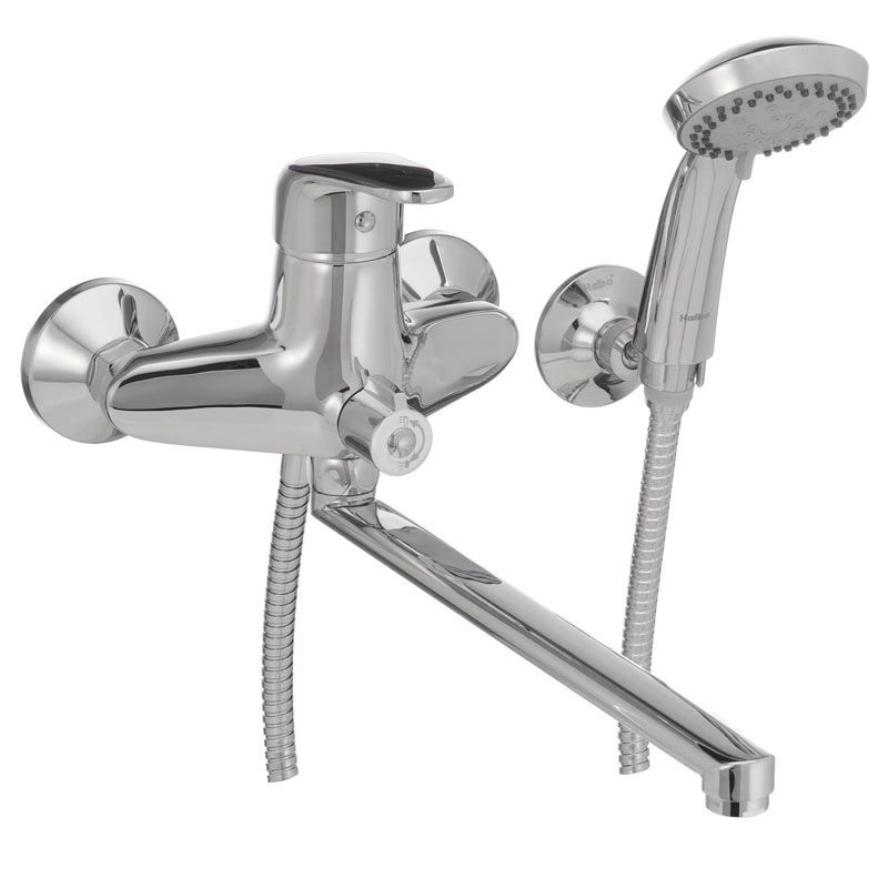 Смеситель для ванны с поворотным изливом Haiba Magic 006имеет заменяемый запорный элемент - картридж с керамическими пластинами диаметром 40 мм. Устанавливается на трубы холодной и горячей воды, вмонтированные в стену. Закрепляется с помощью эксцентриков, которые идут в комплекте вместе с резиновыми прокладками, декоративными чашками, шлангом, лейкой и кронштейном.