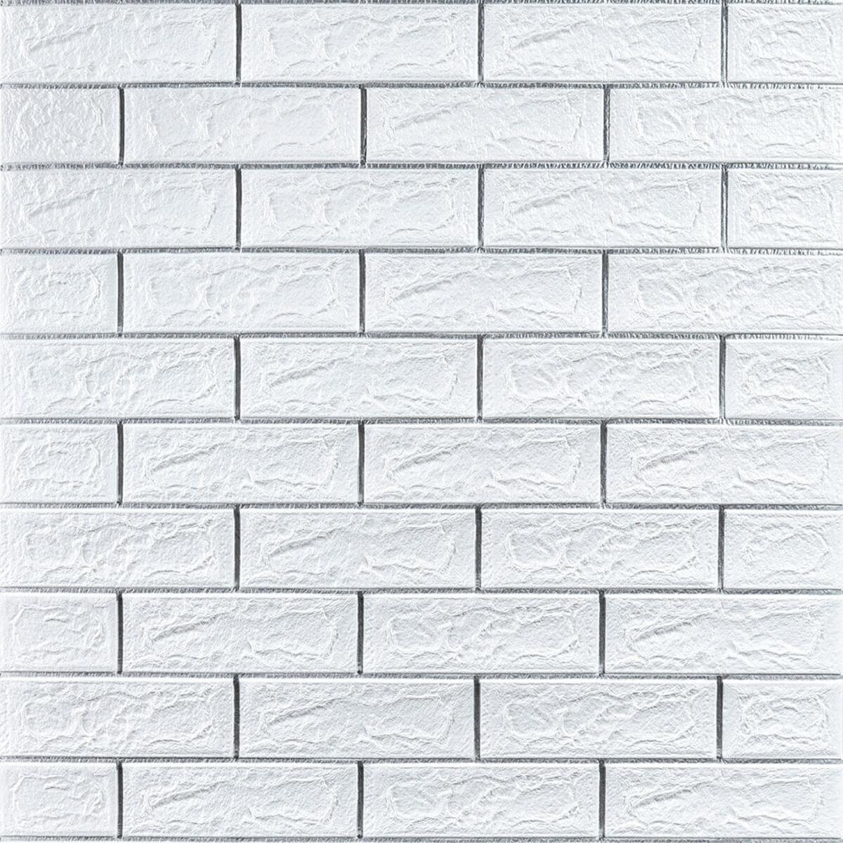 Самоклеющаяся 3D панель кирпич белый полоска серебро 700х770х5мм (100-5)