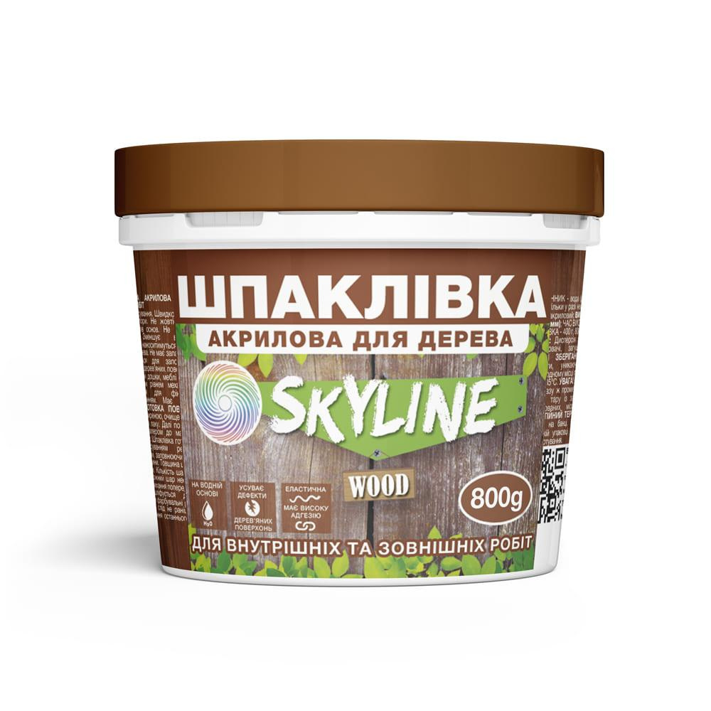 Шпаклевка для дерева акриловая для внутренних и наружных работ SkyLineWood (Скайлайн Вуд). Водоразбавляемая. Готовая к применению. Эластичная, с высокой адгезией к разным типам основ. Быстро сохнет, легко шлифуется, заполняет поры. Устраняет дефекты любых деревянных поверхностей. Не содержит органических растворителей. Уменьшает расход лакокрасочных материалов, которые наносятся после шпаклевания. Имитирует оттенки дерева. Без запаха. Предназначена для заполнения трещин и исправления дефектов деревянных поверхностей: оконные рамы, двери, облицовочные доски, мебель и другие деревянные поверхности с любым уровнем механической нагрузки. Используется для финишного выравнивания перед покраской. Имеет отличное сцепление с поверхностью. ПОДГОТОВКА ПОВЕРХНОСТИ: Основа должна быть сухой, обезжиренной, очищенной от пыли, грязи, остатков краски или лака. Далее поверхность следует отшлифовать наждачной бумагой до матового состояния. СПОСОБ ПРИМЕНЕНИЯ: Шпаклевка готовая к применению. Перед применением тщательно перемешать. Наносится шпателем, заполняя своей массой неровности поверхности и трещины. Толщина слоя не должна превышать 0,3-1,0 мм. Количество слоев, которые наносятся – неограниченное, но каждый слой необходимо наносить только после высыхания предыдущего. Высохшая шпаклевка легко шлифуется мелкой наждачной бумагой. Начинать покрасочные работы, лакирование или нанесение масел следует не раньше, чем через 24 часа после нанесения последнего слоя шпаклевки. ТЕХНИЧЕСКИЕ ХАРАКТЕРИСТИКИ: Растворитель – вода (допускается разбавление с водой до 5% только в случае необходимости); Связующее вещество – латекс акриловый; Расход – 1,6 кг/м2 (при толщине слоя 1мм); Время высыхания – 4-24 часа (при +18-22°С); Состав – дисперсия акрилового сополимера, пигменты, наполнители, загустители, функциональные добавки. Срок хранения – 24 месяца от даты изготовления;