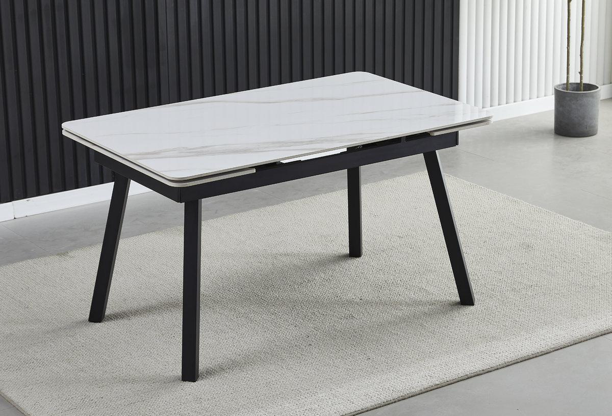 Стіл MADRID CERAMIC 140(200)*85 білий глянець/чорний каркас