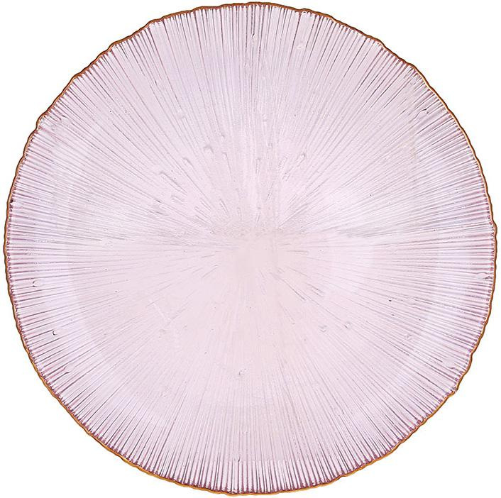 Обеденная стеклянная тарелка розовое стекло с тонкой золотой каймой.