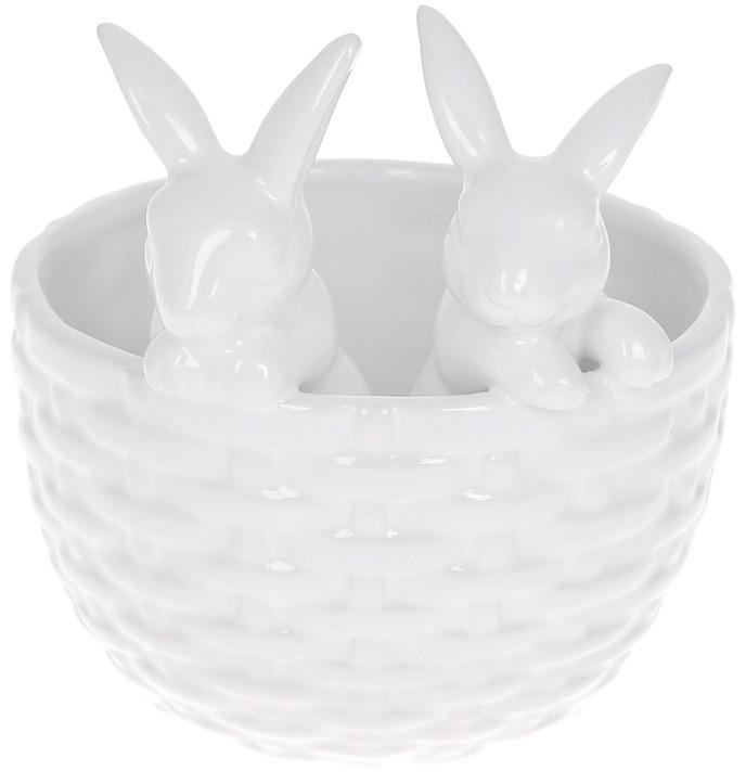 Горшок декоративный Кролики в корзинке 14х13.5х15см White BonaDi