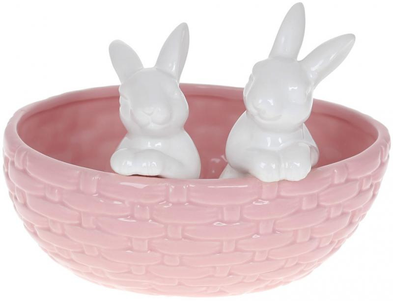 Описание Горшок декоративный Кролики в корзинке 20х15х14.5см Pink BonaDi