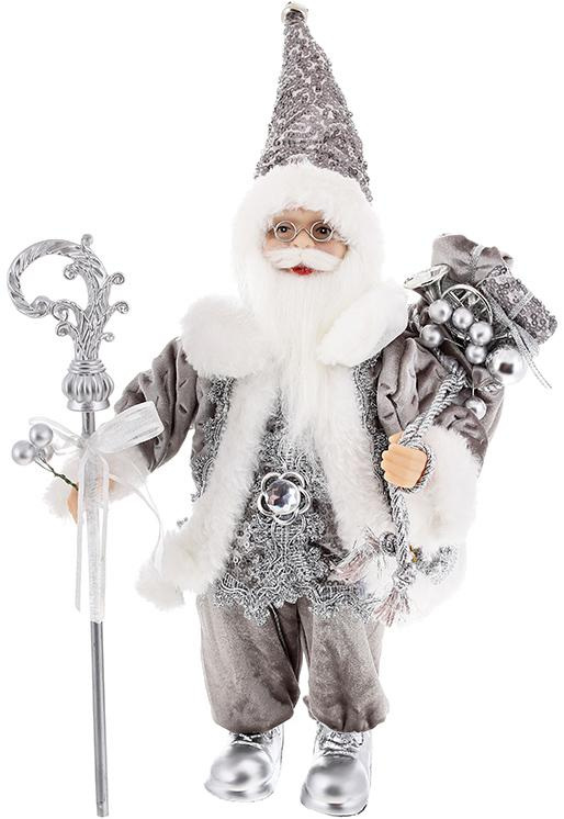 Описание Декоративный Santa в цвете серебро с посохом и подарками BonaDi 30см DP219423