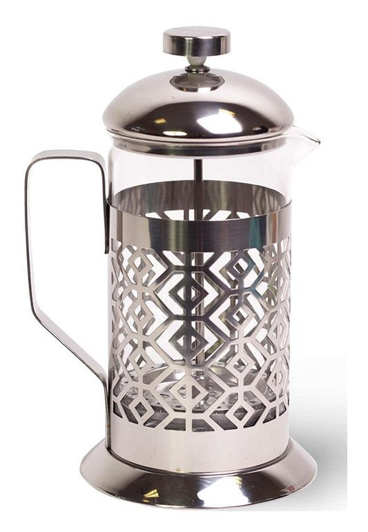 Френч-пресс Frances - современный и стильный, корпус с изящным кружевным декором. Объем 600мл. Глянцевая нержавеющая сталь подойдет под любой кухонный интерьер. Стальной корпус и механизм пресса устойчивы к появлению ржавчины, даже при частом контакте с жидкостями; легко очищаются от следов заварки с помощью мягкой губки. Колба френч-пресса выполнена из стекла. Имеет низкую пористость и гладкую поверхность, не впитывает запахи - ее можно использовать для заварки самых напитков с насыщенным вкусом и ароматом. Размеры: диаметр колбы 9 см, высота френч-пресса 21.5см. Можно мыть в посудомоечной машине.