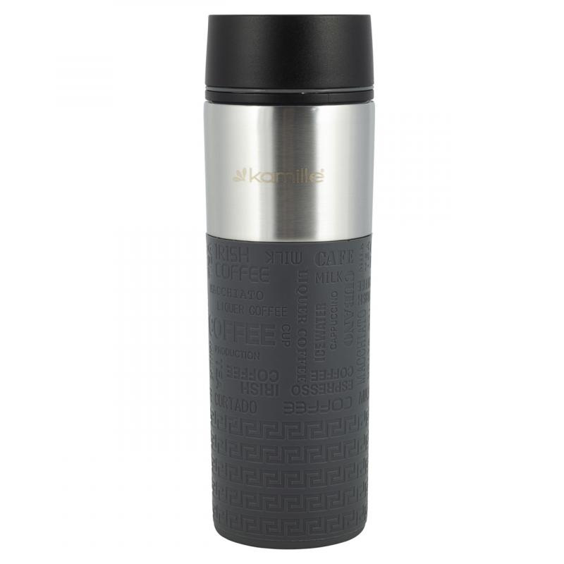 TPR-накладка серого цвета на корпусе обеспечивает комфорт во время использования и препятствует скольжению термокружки в руке.