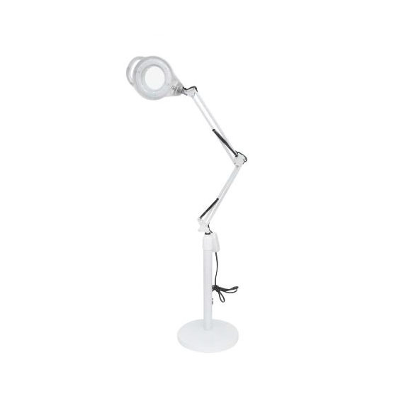 Лампа-лупа напольная - аппарат с круглой лампой и увеличительным стеклом посередине. Лампа на штативе и передвижной крестовине. Работает от сети. Применяется для косметологии, наращивания ресниц, маникюра и педикюра. Технические характеристики: Цвет: белый Напряжение: 110 В / 220 В Объектив Диаметр: 125 мм Лампа Тип: LED Лампа мощность: 22 Вт Увеличение: 3-5X Лампа-лупа является наиболее популярной косметологической лампой. Лампа-лупа имеет пятикратное увеличение и жесткий пантограф, который позволяет быстро и надежно зафиксировать лампу. Пантограф закрыт декоративным пластиком, позволяет не портить внешний вид лампы. Лампа поставляется на штативе (на колесиках), что позволяет перемещать лампу по кабинету, без привязки к столу.