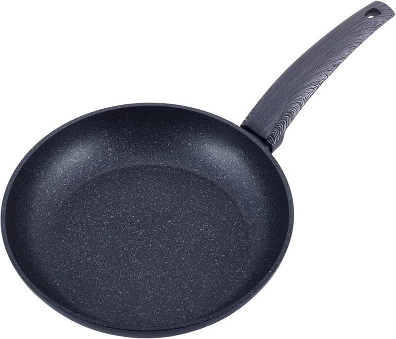 Сковорода Ø28см, высота стенок 5.5см, длина ручки 18см. Универсальная сковорода из кованного алюминия с плотными прочными стенками.