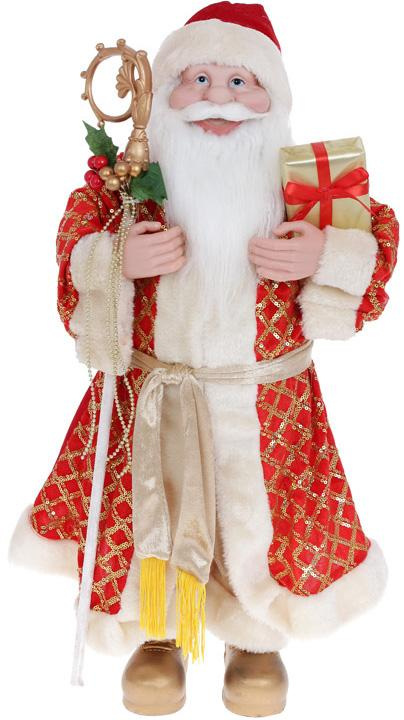 Фигура Санта с посохом (мягкая игрушка), красный с золотом.