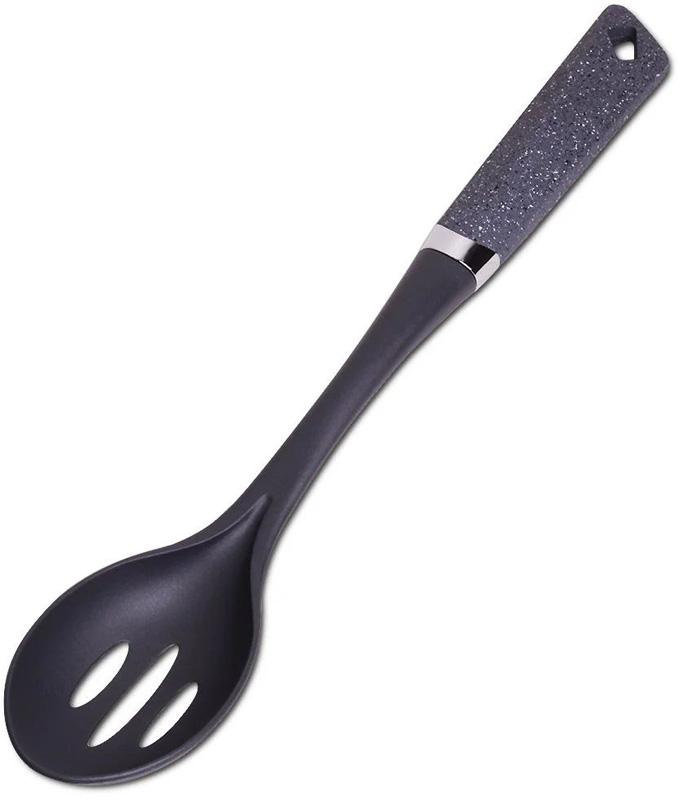 Нейлоновая поваренная ложка Saffron черного цвета со стильной мраморной вставкой на ручке.
