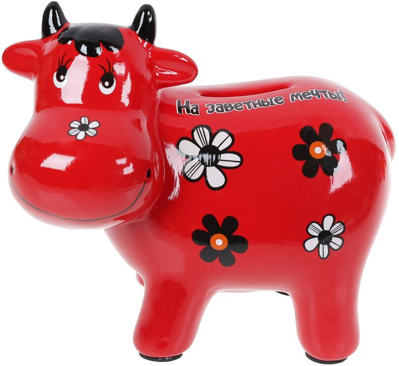 Копилка керамическая Коровка На заветные мечты 14х17см красная Bona DP73597
