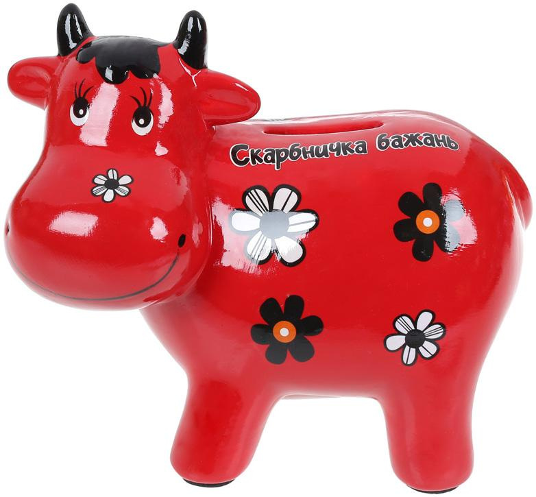 Копилка керамическая Коровка Скарбничка бажань 14х17см красная Bona DP73596