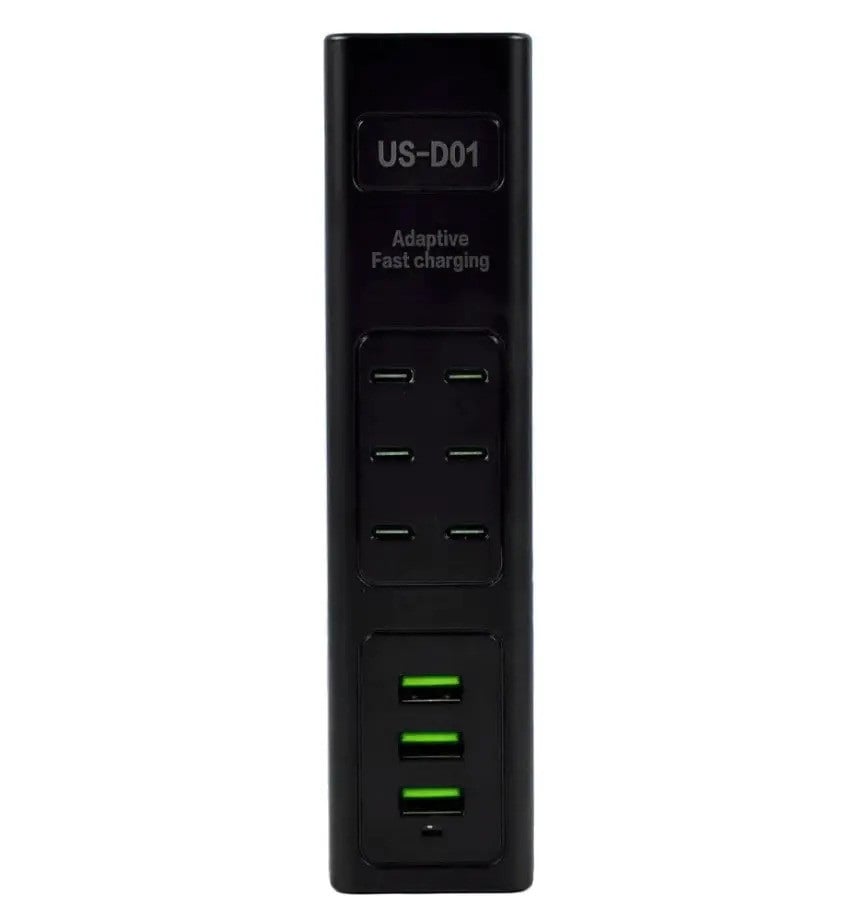 Адаптер US-D01 - это универсальный и мощный концентратор, который может заряжать несколько устройств одновременно благодаря шести портам Type-C и трем портам USB.