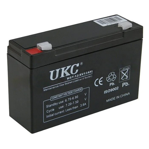 Свинцово-кислотный аккумулятор UKC Battery WST-12 6V 12A предназначен для любой портативной техники, которая работает от 6V. Такой техникой может выступать: фонарь или освещение, детский электро-автомобиль, портативные торговые весы, ИБП от компьютера и прочее. Аккумулятор выполнен по технологии «Свинцово-кислотный AGM», имеет форму кирпича. Электролит данного аккумулятора имеет гелеобразное состояние, не боится наклонов, переворотов, низких разрядов и минусовой температуры.