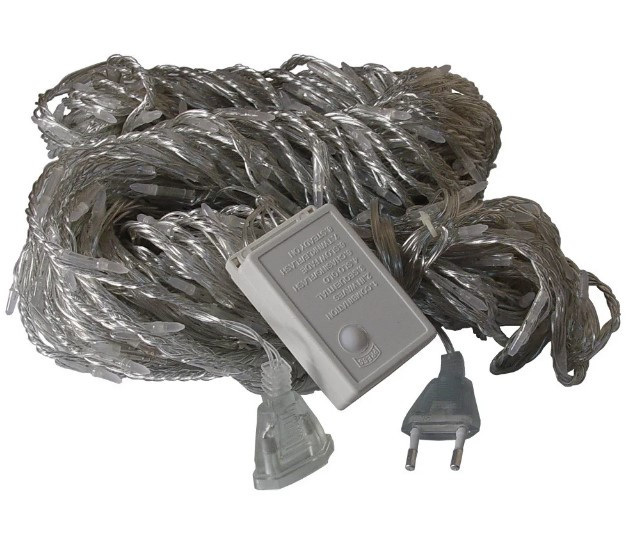 Питание гирлянды происходит от домашней сети. Размер гирлянды составляет 3 метра в длину и 3 в ширину.