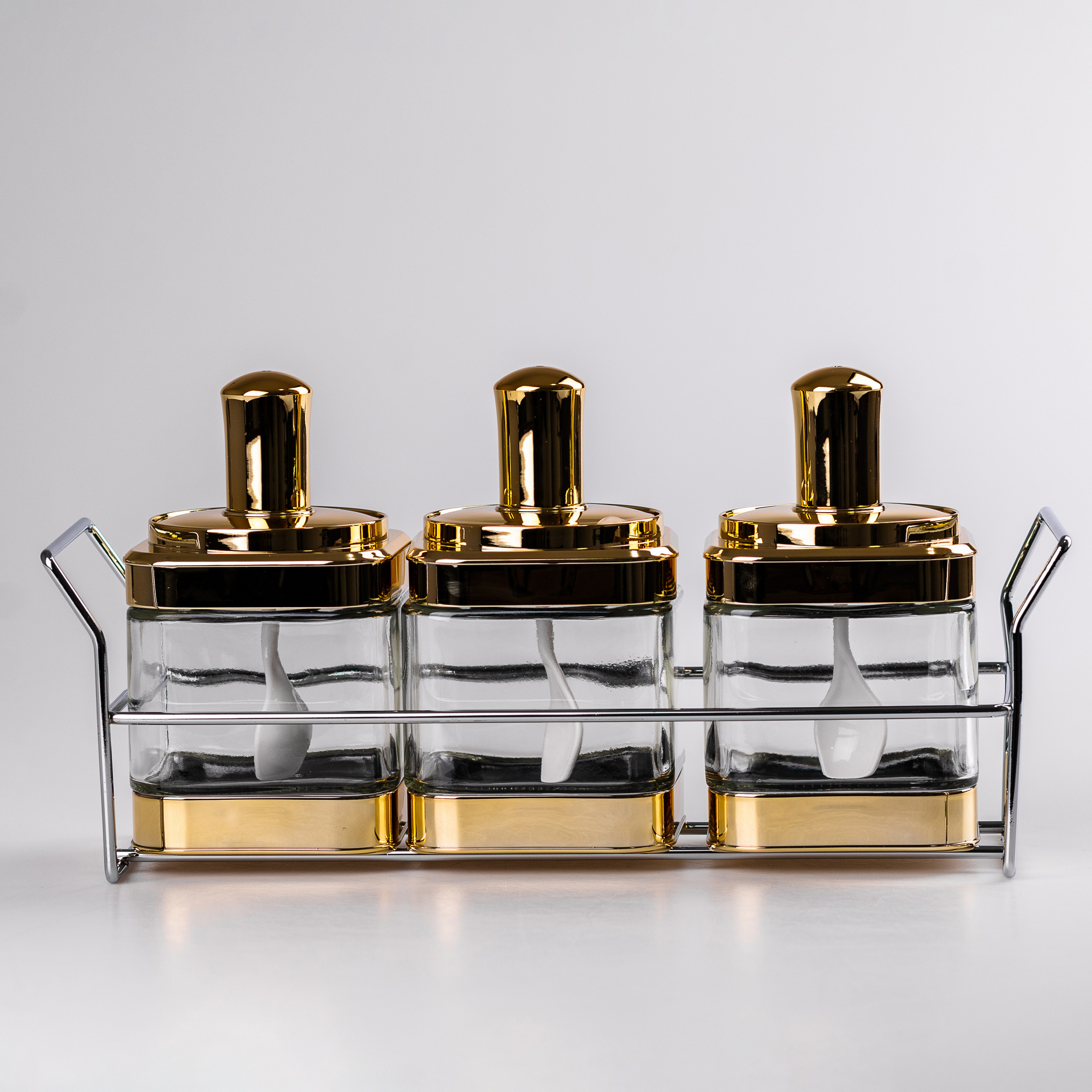 Описание Набор банок для сыпучих продуктов TS Kitchen с ложкой на золотой подставке (HP531FS1030J)
