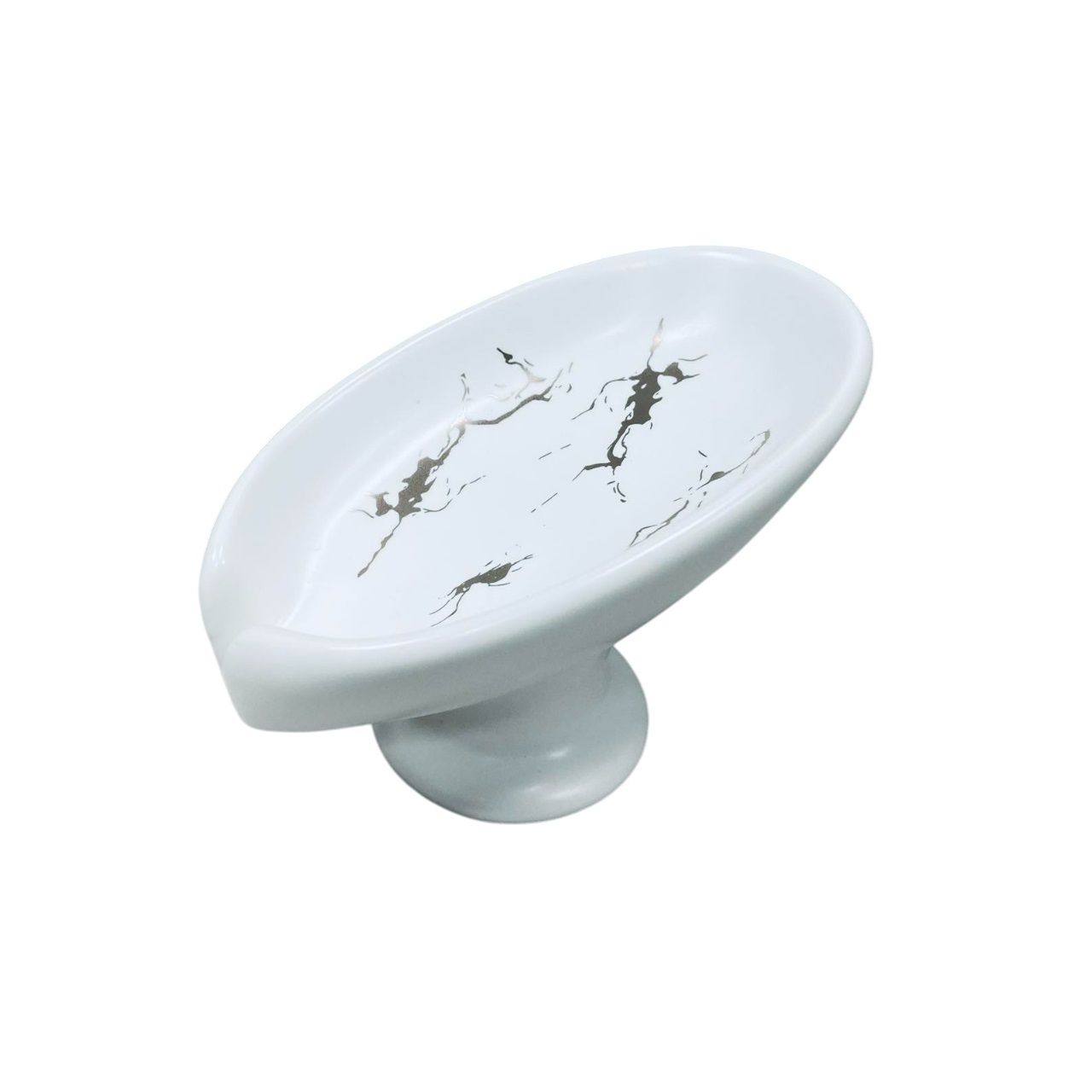 Мыльница керамическая A-PLUS 3988 h - 9,7 см Белый мрамор