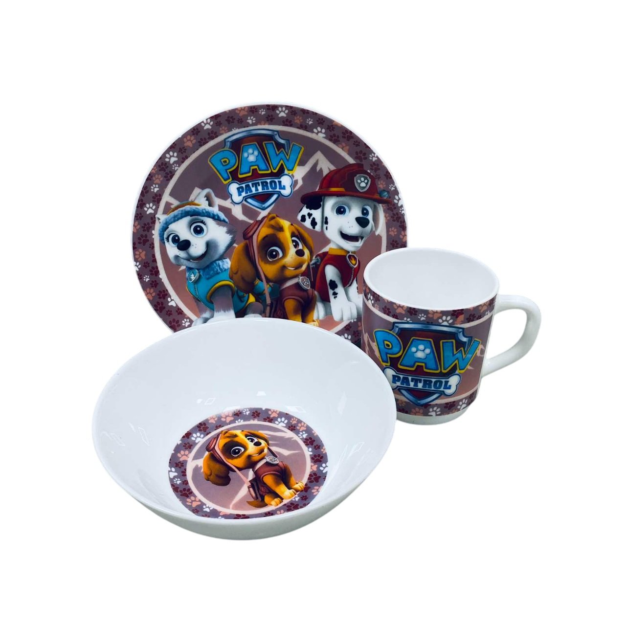 Набор детской посуды из стеклокерамики 3 предмета Щенячий Патруль розовый 3535-9 Набор упакован в подарочную коробку и отлично подойдет для подарка. Таким красивым и полезным подарком Вы сможете обрадовать и детей и родителей. Подарив своим любимым деткам набор посуды с любимым Героем, Вы обеспечите ребенку яркие впечатления, незабываемые эмоции и хорошее настроение, а главное – аппетит!!! Характеристика : Вид: Детская посуда Тип поставки: Набор Материал: Стеклокерамика Комплектация: Десертная тарелка 17,5 см, суповая тарелка d – 15,8 см, h – 5,5 см, чашка 290 мл, d – 8 см, h – 9,2 см.
