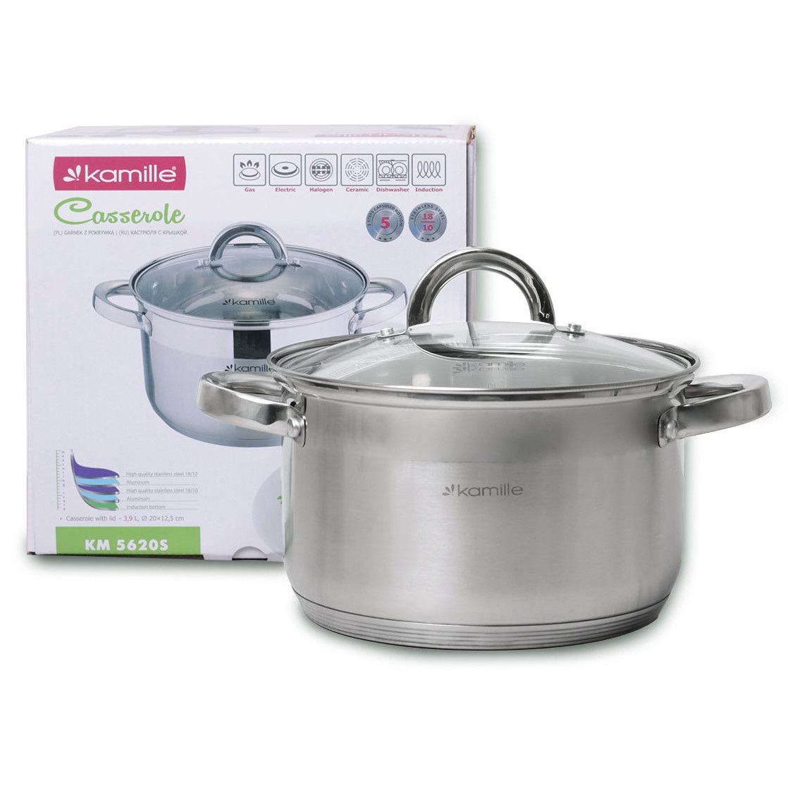 Кухонная кастрюля 3.8л из нержавеющей стали с крышкой и полыми ручками KL225082 Kamille