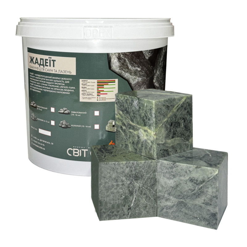 Описание Каміння для сауни Жадеїт пиляне у формі куба 7x7x7 см