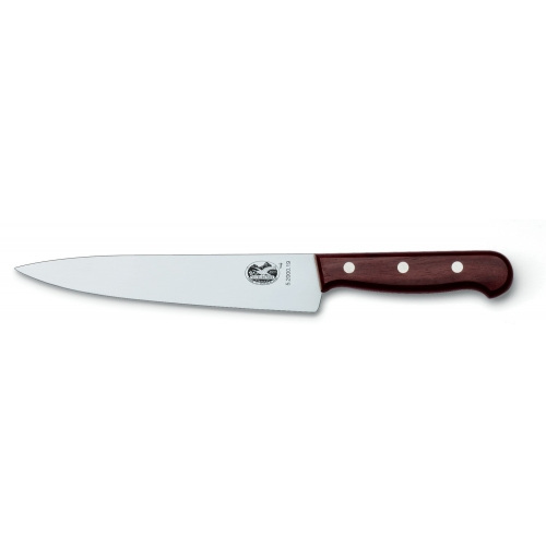 Victorinox — швейцарская компания, известная в первую очередь как производитель ножей. Штаб-квартира расположена в населённом пункте Ибах, в Швейцарии. Сегодня торговая марка Victorinox — крупнейший производитель ножей в Европе. Широкий ассортимент кухонных аксессуаров и ножей производится компанией Victorinox. Начиная от ножей из прокатной стали, заканчивая профессиональными ножами с кованым клинком. Сегодня Victorinox — один из ведущих изготовителей ножей в мире. Компания известна не только своими знаменитыми складными моделями, кухонные ножи также завоевали большую популярность во всем мире. Victorinox изготавливает безупречные кухонные и хозяйственные ножи из углеродистой стали с применением особого процесса отпуска металла. Этот процесс позволяет создать режущую кромку, которая при многократном повторном затачивании сохраняет первоначальную остроту. Кухонные и хозяйственные ножи рассчитаны на самый широкий круг потребителей и предназначены для всех видов режущих или рубящих работ. Рукояти ножей могут быть выполнены из полиамидов Fibrox или Nylon, либо из ценных пород древесины. Fibrox – полиамид, материал из которого изготавливают рукояти для многих кухонных ножей Victorinox, не скользит в руке, даже если она мокрая или в масле, гигиеничен. Wood Carving — шеф-нож с широким лезвием. Любимый нож как начинающих, так и профессиональных поваров. Универсален в исполнении, может применяться для чистки, шинковки, нарезки и прочих работ. Настоящая рабочая лошадка среди ножей. Эргономический дизайн и антискользящая рукоятка делают этот нож идеальным в профессиональном использовании.