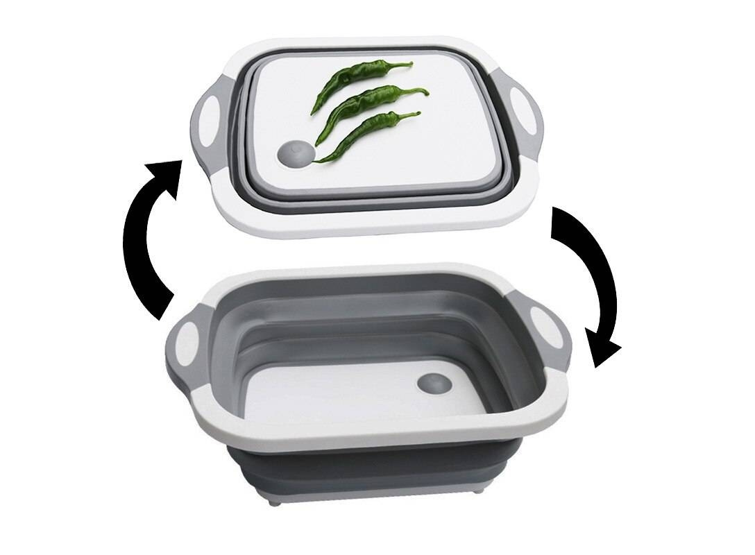 Доска 2 в 1 Chopper: для разделки + миска. Качественная кухонная утварь пользуется спросом всегда. Ведь намного приятнее готовить еду, когда вокруг этому способствует атмосфера и условия работы. Вы точно не сможете пройти мимо доски для разделки продуктов Chopper, что может служить доской и одновременно миской.Chopper 3 в 1 будет служить кухонной доской для нарезки овощей и фруктов, мяса и птицы, сыров и колбас и даже хлеба. А потом Вы лёгким движением можете трансформировать доску в миску и дальше работать с продуктами.Доска + миска Chopper 3 в 1 может стать очень удачной покупкой, которая позволит сэкономить Вам пространство в шкафу, время мытья посуды и денежные средства. Вы с помощью одного прибора можете "убить 2 зайцев": и помыть продукт и разделать его.В конструкции предусмотрены ручки для более удобного использования (переноски блюд / продуктов или, для того чтобы повесить на крючок доску).Доска-миска выполнена из материалов высокого качества, пригодных к работе с продуктами питание. Дизайн Chopper 2 в 1 современный и эргономичный, к тому же очень компактный в сложенном виде. Каркас доски сделан из прочного пластика, а складная часть для миски из плотного, но гибкого силикона. Материалы не впитывают запахи, не токсичны и экологически чистые, а цвет от продуктов питания не остается на доске. Также материалы стойкие к различным температурам. Доска-миска Chopper 2 в 1 представлена в комбинации белого и серого цвета.Миска Chopper служит отличным блюдом для сервировки салатов, фруктов и овощей на стол. И такую ёмкость можно использовать как органайзер для кухонных приправ, соусов и прочего.Доска со складной миской Chopper 3 в 1 будет незаменимой на пикнике или в туристическом походе так как займет мало места и позволит хорошенько промыть продукты. Даже не сомневайтесь, что миска и по совместительству доска Chopper 2 в 1 приведет в восторг любую хозяйку. По этому смело покупайте ее на подарок по любому поводу, даже просто, чтобы проявить заботу о любимой маме, бабушке, сестре или жене. Параметры доски-миски Chopper 2 в 1:● Габариты в сложенном виде доски 40 см × 30 см × 3 см, ёмкость миски 20 см × 25 см × 14 см.● Есть отверстия для рук или что бы повесить доску на стену.● Материал: АВС пластик + силикон, не впитывает цвет и запахи, не содержит токсинов.● Цвет: комбинация белого и серого.● Устойчивые ножки миски, по рабочей поверхности не скользит.● Есть функция дуршлага.● Весит утварь всего около 600 грамм.Товар, доска 2 в 1 Chopper, поставляется в сложенном виде в целлофановой упаковке от производителя.