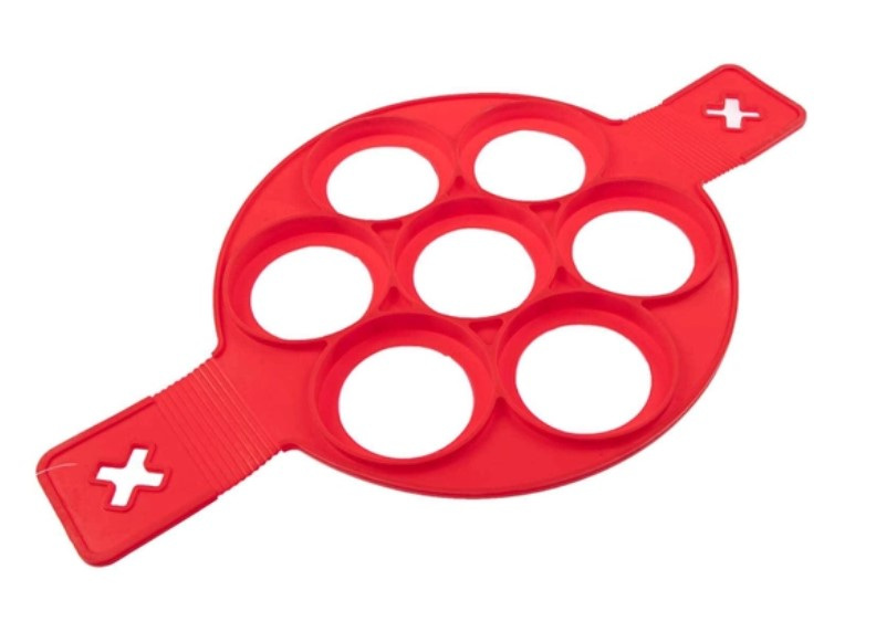 С первого взгляда это устройство чем-то напоминает форму для лепки пельменей. Тем не менее, эта форма изобретена для более сладких продуктов. Силиконовая форма поможет вам быстро делать оладьи без лишних хлопот. Форма рассчитана на приготовление сразу 7-х штучек. Форма не подвержена приставанию теста, а значит вам проще будет ее мыть. Компактные размеры для ее хранения. Диаметр 1 шт. 7 см.