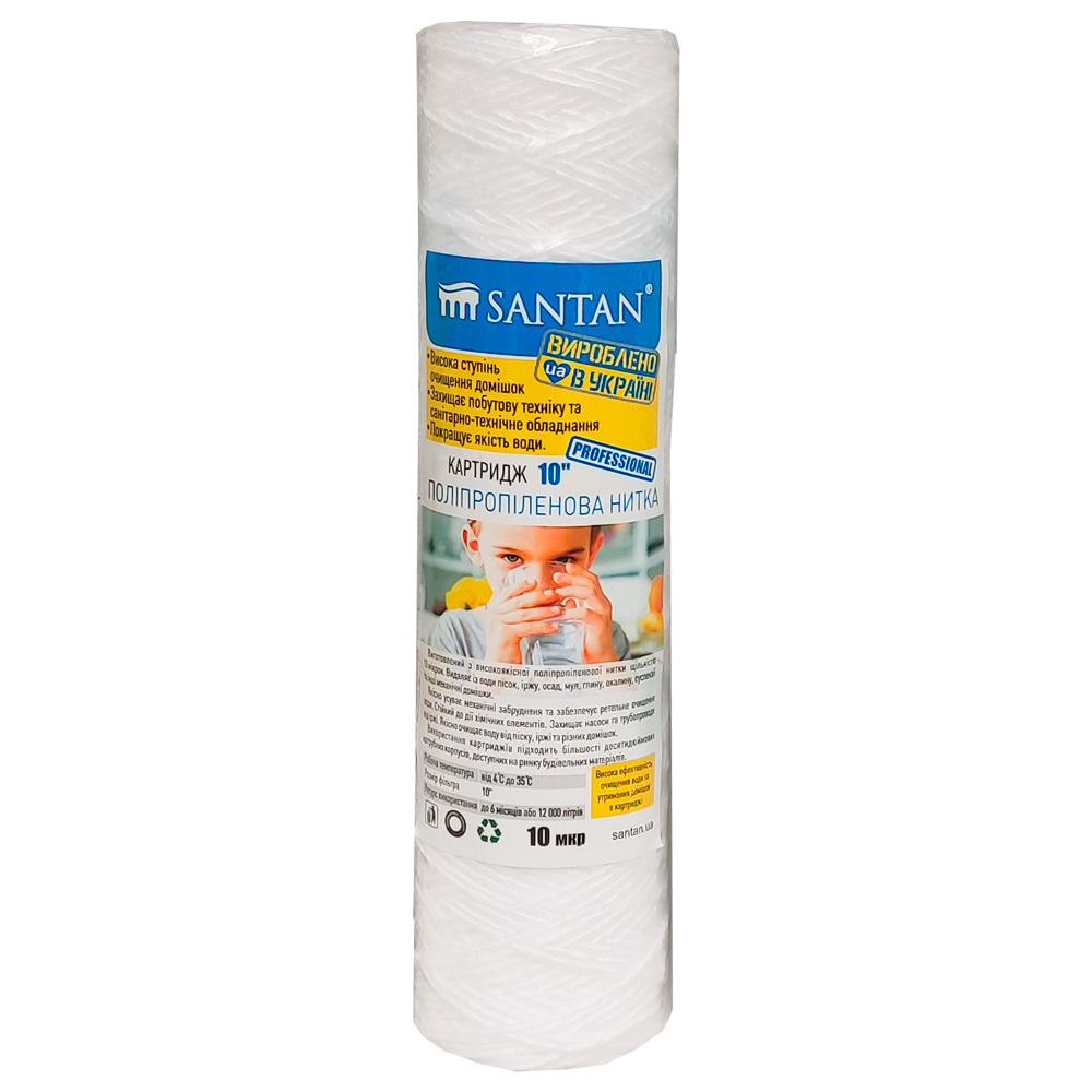 Описание Картридж фильтра Santan полипропиленовая нить 10", d=58 мм, 10 мкм