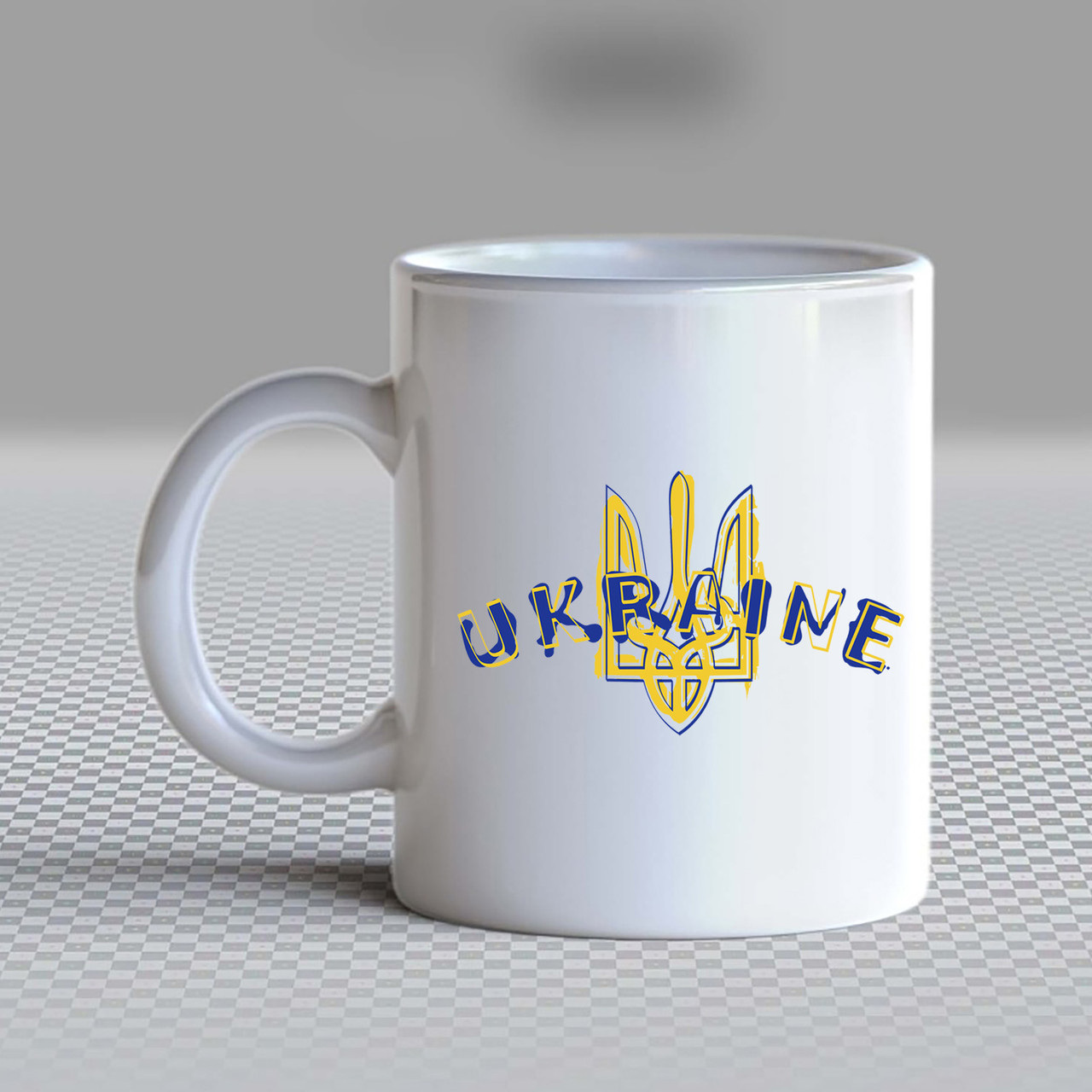 Кружка чашка белая с принтом "Сине-желтое сердце и желтый герб Украины Ukraine" Кавун
