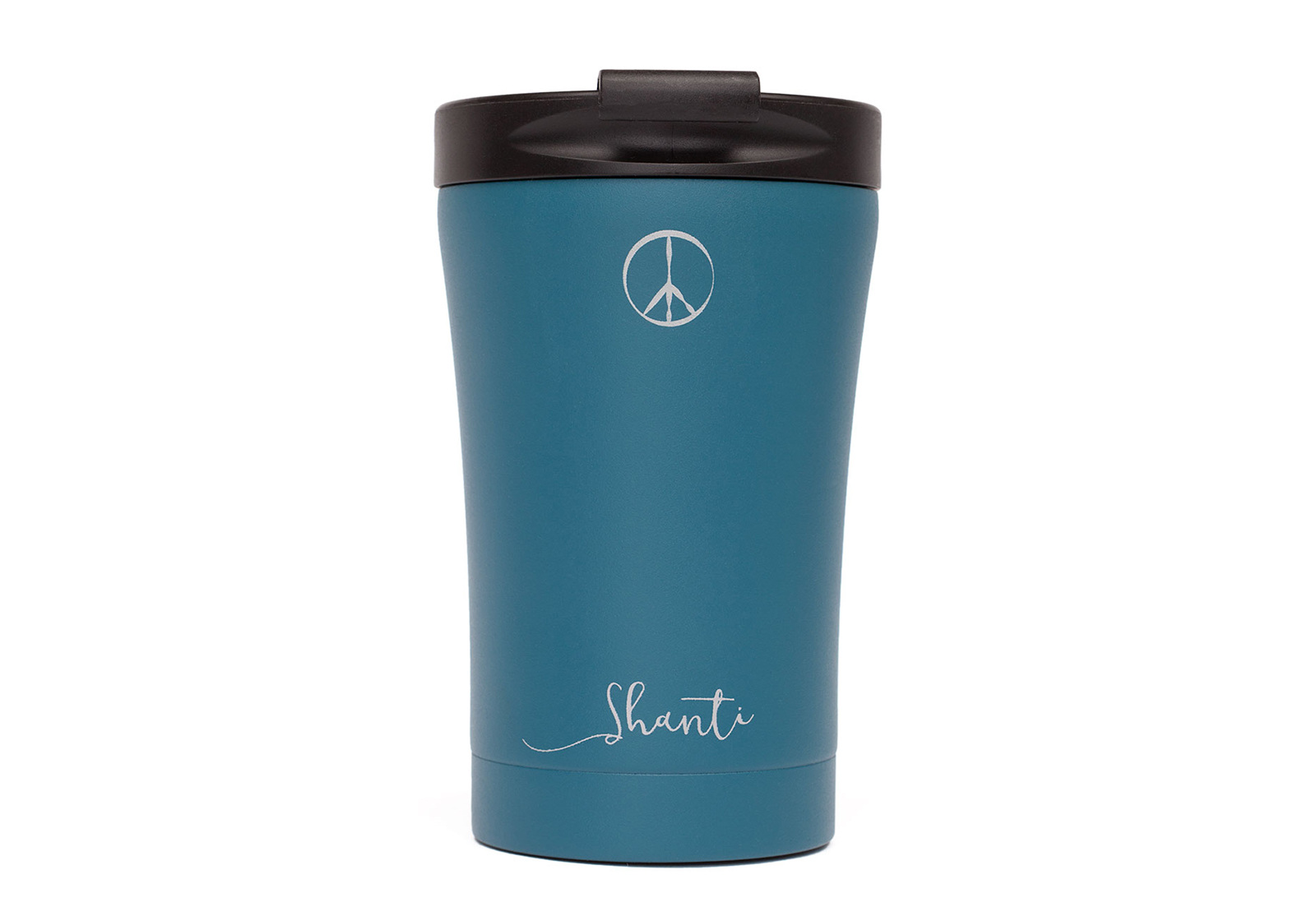 С чашкой Bodhi вы можете наслаждаться любимым напитком в любое время и в любом месте. Термокружка представлена в цвете петроль со знаком мир и его санскритским определением “Shanti”.