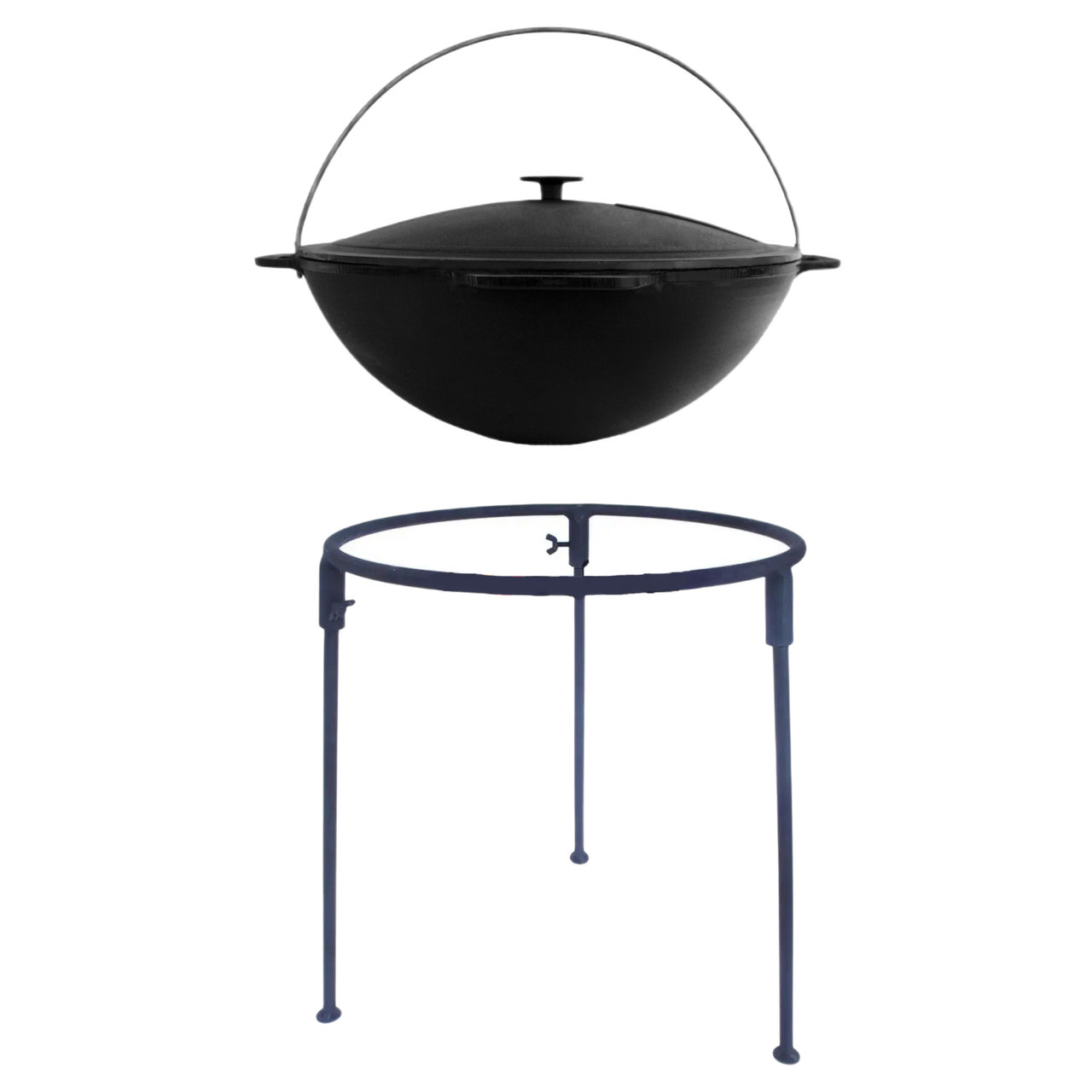 Большой азиатский чугунный казан ТМ BRIZOLL емкостью 12 л. С крышкой чугунной (на фото). Предназначен для приготовления блюд на костре или мангале, требующих тушения, томления и приготовления в собственном соку.