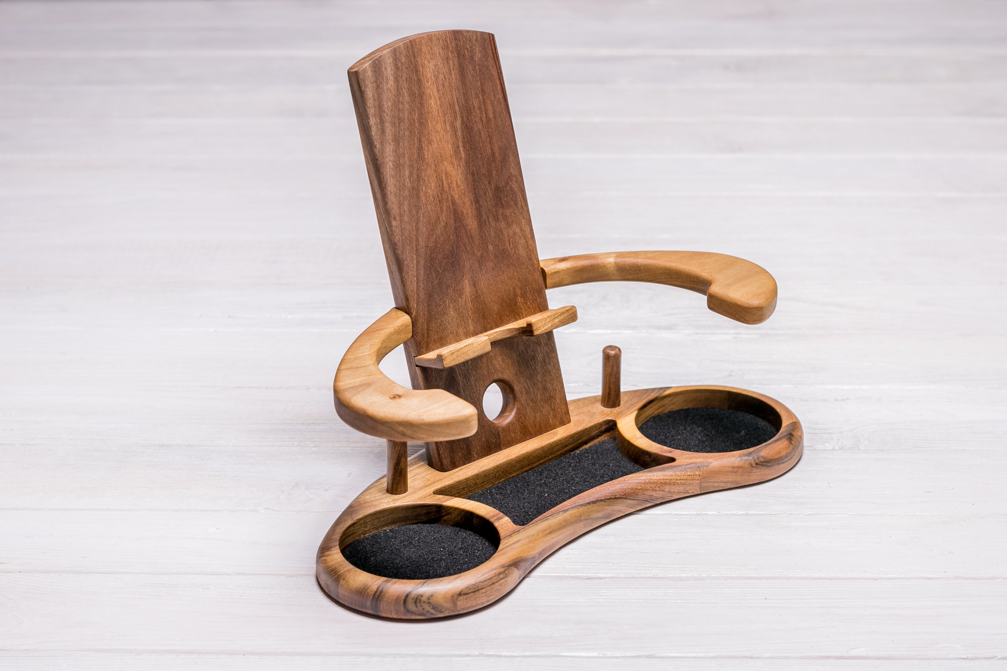 Мы представляем Вам универсальный настольный органайзер из дерева для смартфона, часов, браслетов, колец и других мелочей, которым можно найти место на этом аксессуаре. Мы постарались разработать такой форм-фактор изделия, чтобы им могло пользоваться как можно больше людей. Продуманная конструкция в союзе с высоким качеством выполнения работ, а также практичность в применении и повседневное удобство сделают работу с этим органайзером для Вас незабываемой. В нижней части органайзера вклеен фетр черного цвета, чтобы придать оригинальность и стиль изделию.