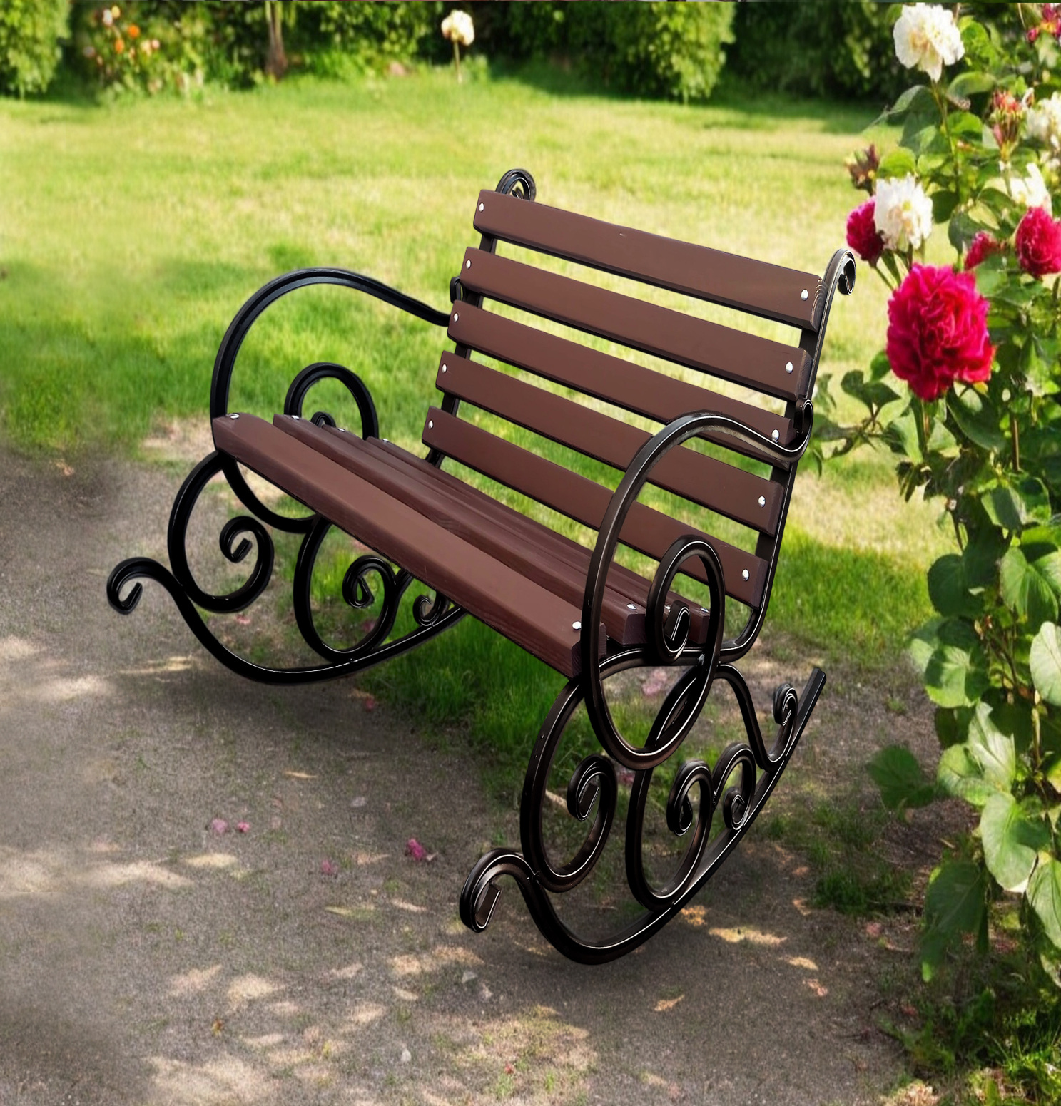 Кресло-качалка садовое Tobi Sho Амалин кованное для дачи, сада, террасы 0,5 м цвет Орех Ромны