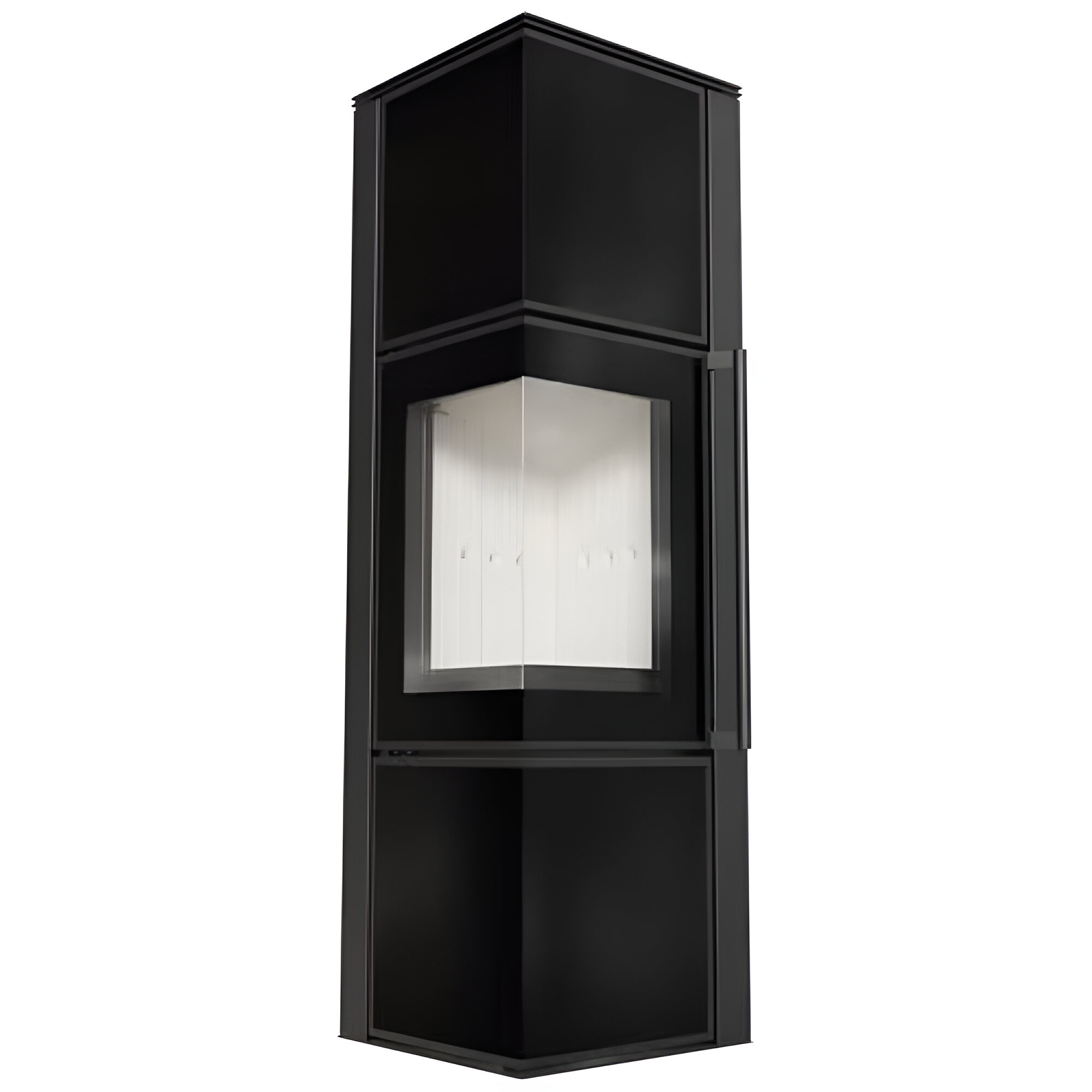 Печь-камин на дровах Kratki TORA M Nero Assoluto 8 кВт сталь, угловой керамогранит (Ø150)