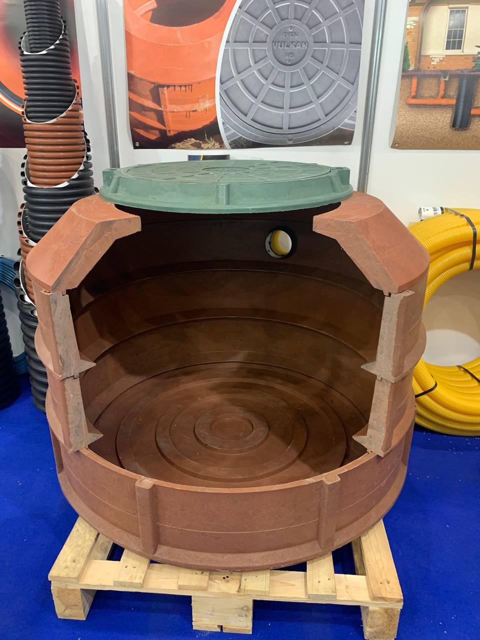 Полимерные колодцы VULKAN — (ВУЛична КАНалізація) это прежде всего смотровые колодцы благодаря своему диаметру 1000 мм. Отдельные элементы монтируются в канализационную конструкцию, в которой можно провести очистку каналов, а так же осуществлять контроль работы системы.