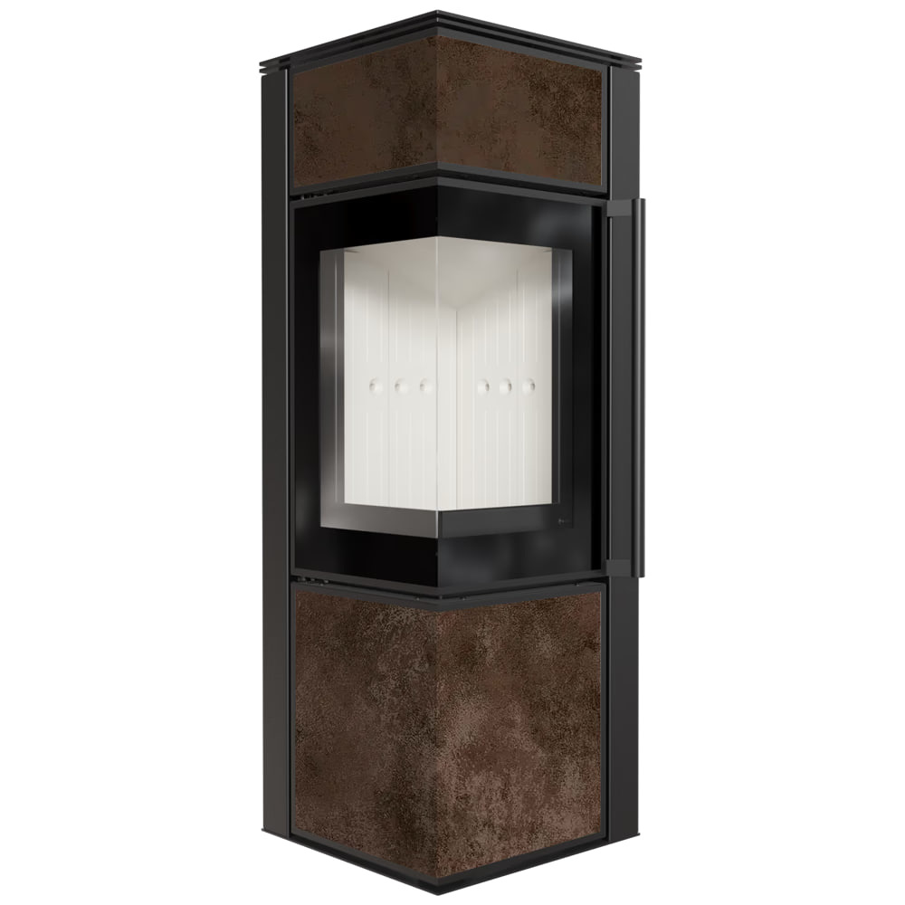 Печь-камин на дровах Kratki TORA S Nero Assoluto 8 кВт сталь, угловой керамогранит (Ø150)
