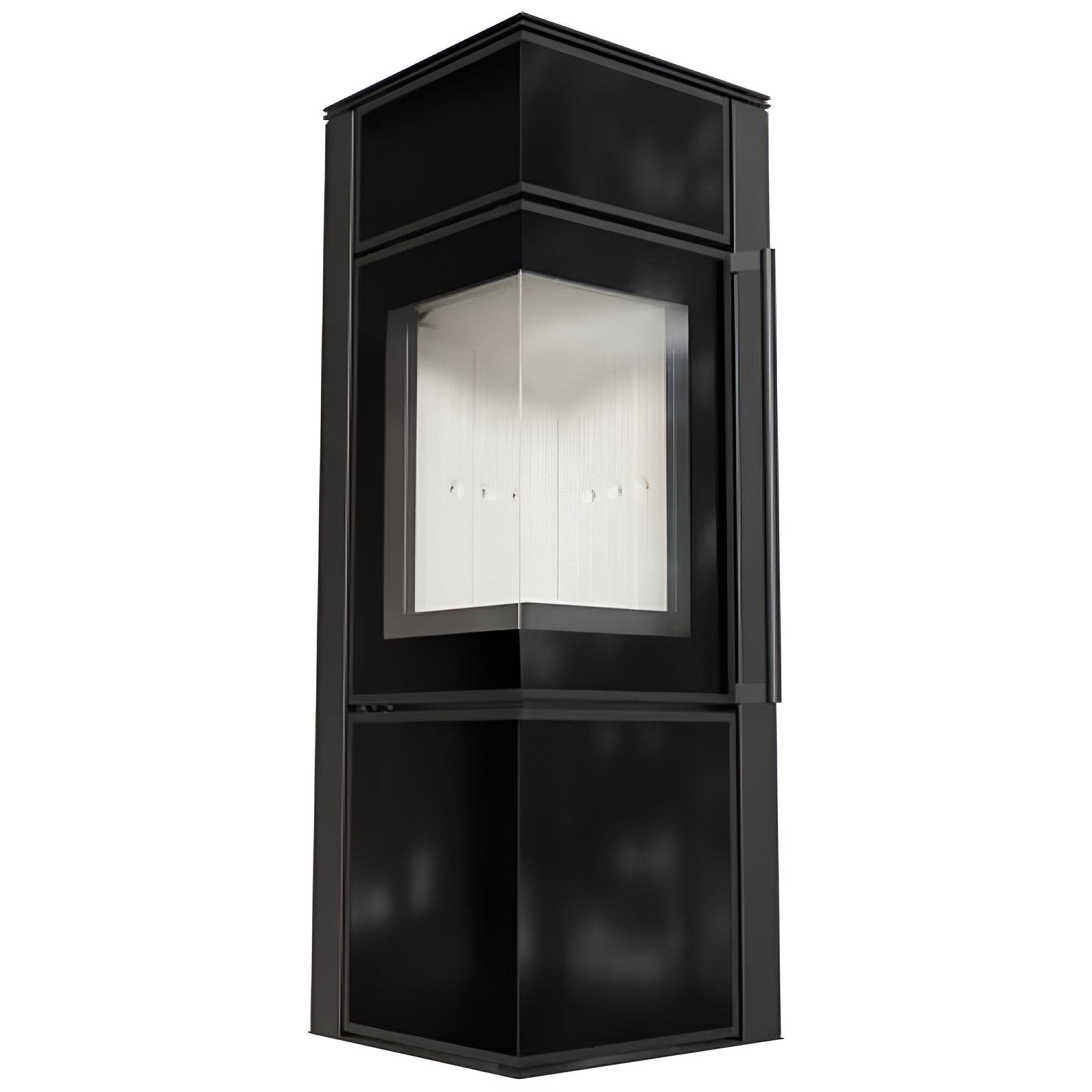 Печь-камин на дровах Kratki TORA S Nero Assoluto 8 кВт сталь, угловой керамогранит (Ø150)