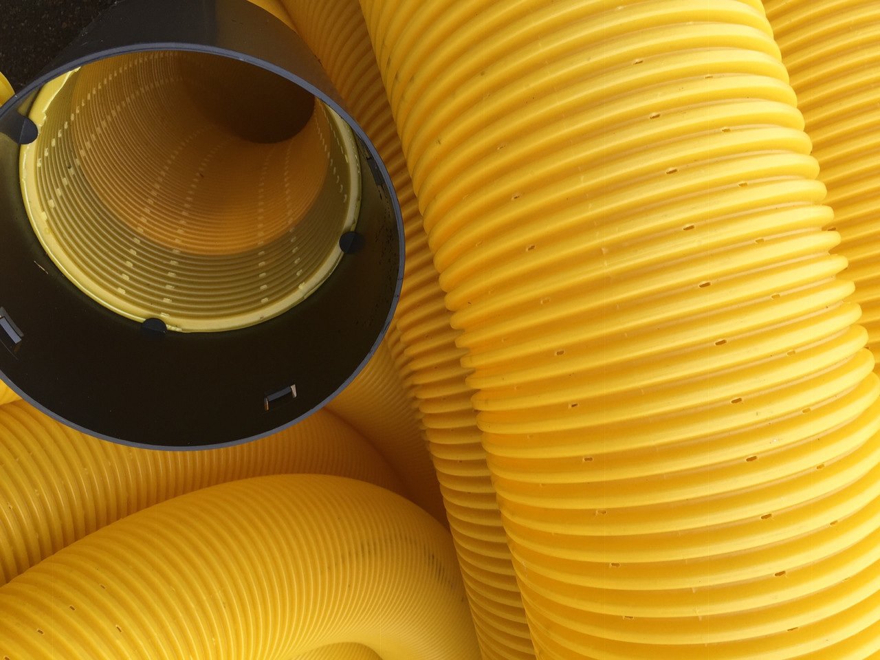 Дренажные трубы ПВХ Важным преимуществом дренажных гофрированных труб из ПВХ является малый вес. Pipelife производит дренажные трубы диаметром от 50мм, 80мм, 110мм, 160мм до 200мм. с полным комплектом фасонных частей. Дренажные системы Pipelife находят применение во всех сферах экономики и строительства, где речь идет об урегулировании водного баланса, понижении влажности грунтов и оттока чрезмерного количества прибывающих вод. Дренажные системы Pipelife предназначены для строительства горизонтальных дренажей в различных географических и гидрогеологических условиях. Дренажные гофрированных трубы производятся из поливинилхлорида ПВХ методом экструзии. Спиральные завитки гофрированных стенок труб не только увеличивают выносливость трубы к сдавливанию, но способствуют эластичности, что делает возможным сматывание длинных отрезков труб, транспортирование и складирование их в бухтах. Важным преимуществом гофрированных труб из ПВХ является малый вес (около 20 раз меньше веса керамических труб равного диаметра), благодаря чему транспортировка и укладка труб значительно дешевле и быстрее. Цвет: дренажные трубы из ПВХ производятся жёлтого цвета. Фирма Pipelife предлагает дренажные трубы и фасонные части необходимые для выполнения водоотводных сетей в разных водогрунтовых условиях: гофрированные перфорированные трубы PVC номинальным диаметром dn = 50, 65, 80, 100, 125, 160 и 200 мм, гофрированные перфорированные трубы PVC с фильтром из волокон PP или кокосового волокна номинальным диаметром dn = 50, 65, 80, 100, 125, 160 и 200 мм, трубы PVC, гладкие стенки, неперфорированные (присоединения PVC), система монтажных фасонных частей (отводы прямые (90°) и угловые (45°), тройники, соединения, заглушки, редукции, элементы присоединения). Фасонные части и трубы соединяются специальными креплениями. Такого типа соединения просты и быстры в монтаже. Гофрированные перфорированные трубы из PVC производятся разных размеров отверстий перфорации. Отверстия размещены равномерно по целой окружности трубы и имеют большую суммарную площадь, порядка 1200-4600 мм2 на 1 погонный метр трубы (в дренажах из керамических труб поверхность отверстий составляет 300-700 мм2/к м.п. в зависимости от диаметра трубы). Благодаря этому сопротивление прохождения воды через отверстия перфорации значительно меньше и больше эффективность водоотвода.