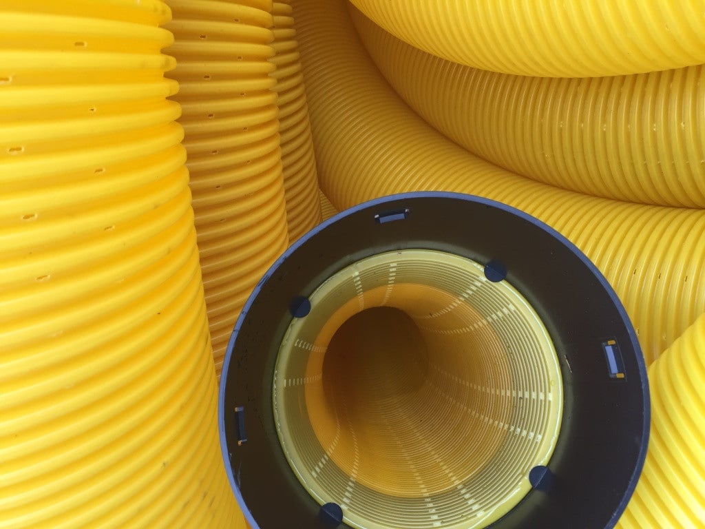 Дренажные трубы ПВХ Важным преимуществом дренажных гофрированных труб из ПВХ является малый вес. Pipelife производит дренажные трубы диаметром от 50мм, 80мм, 110мм, 160мм до 200мм. с полным комплектом фасонных частей. Дренажные системы Pipelife находят применение во всех сферах экономики и строительства, где речь идет об урегулировании водного баланса, понижении влажности грунтов и оттока чрезмерного количества прибывающих вод. Дренажные системы Pipelife предназначены для строительства горизонтальных дренажей в различных географических и гидрогеологических условиях. Дренажные гофрированных трубы производятся из поливинилхлорида ПВХ методом экструзии. Спиральные завитки гофрированных стенок труб не только увеличивают выносливость трубы к сдавливанию, но способствуют эластичности, что делает возможным сматывание длинных отрезков труб, транспортирование и складирование их в бухтах. Важным преимуществом гофрированных труб из ПВХ является малый вес (около 20 раз меньше веса керамических труб равного диаметра), благодаря чему транспортировка и укладка труб значительно дешевле и быстрее. Цвет: дренажные трубы из ПВХ производятся жёлтого цвета. Фирма Pipelife предлагает дренажные трубы и фасонные части необходимые для выполнения водоотводных сетей в разных водогрунтовых условиях: гофрированные перфорированные трубы PVC номинальным диаметром dn = 50, 65, 80, 100, 125, 160 и 200 мм, гофрированные перфорированные трубы PVC с фильтром из волокон PP или кокосового волокна номинальным диаметром dn = 50, 65, 80, 100, 125, 160 и 200 мм, трубы PVC, гладкие стенки, неперфорированные (присоединения PVC), система монтажных фасонных частей (отводы прямые (90°) и угловые (45°), тройники, соединения, заглушки, редукции, элементы присоединения). Фасонные части и трубы соединяются специальными креплениями. Такого типа соединения просты и быстры в монтаже. Гофрированные перфорированные трубы из PVC производятся разных размеров отверстий перфорации. Отверстия размещены равномерно по целой окружности трубы и имеют большую суммарную площадь, порядка 1200-4600 мм2 на 1 погонный метр трубы (в дренажах из керамических труб поверхность отверстий составляет 300-700 мм2/к м.п. в зависимости от диаметра трубы). Благодаря этому сопротивление прохождения воды через отверстия перфорации значительно меньше и больше эффективность водоотвода.